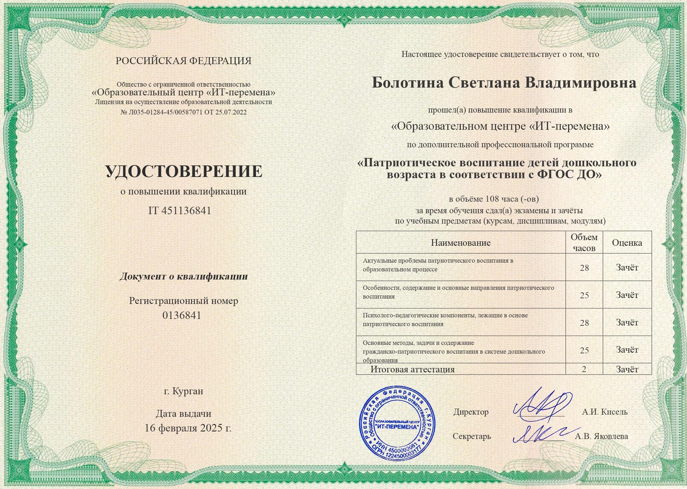 (" Образовательный центр "ИТ -перемена". 108часов. Форма обучения: дистанционная . Направленность: иное).